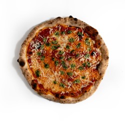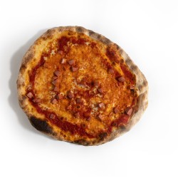 € 8,50GUANCIALE, MOZZARELLA, PECORINO ROMANO, PEPE, POMODORO BIO